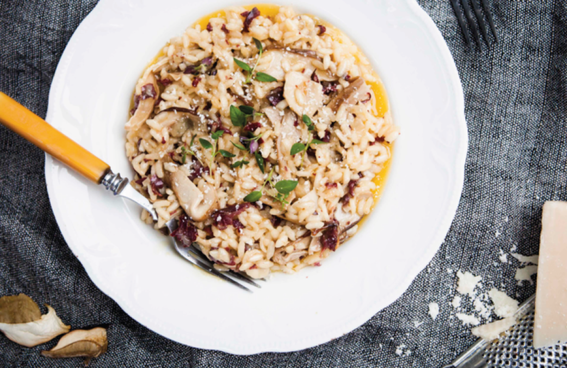 - Warm up the canola oil in a broad-based saucepan, and add the chopped shallot. Sauté for a moment and add the rice, reindeer, butter and porcini. Let it sauté for a while and then add the white wine.